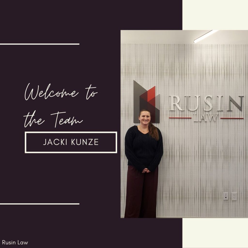 We are pleased to welcome Jacki Kunze to Rusin Law. Jacki is a graduate of Charleston School of Law and has prior work experience in personal injury litigation. We are excited to welcome her and look forward to the contributions she will make to our firm. Please join us in extending a warm welcome to Jacki.